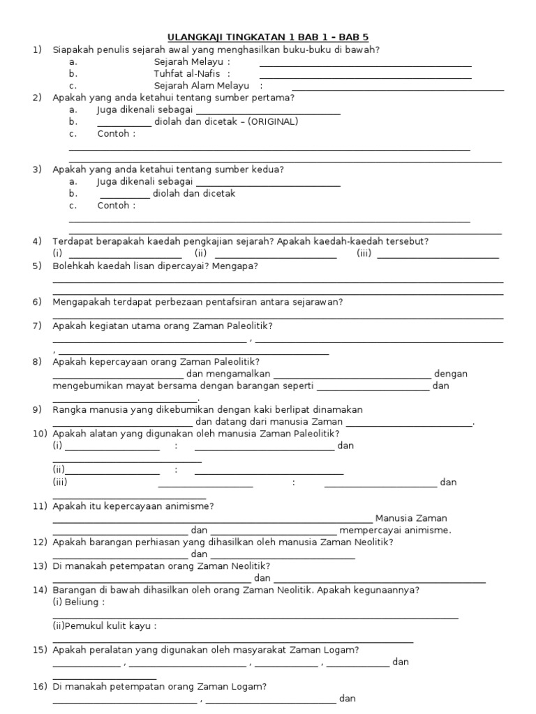 Tingkatan 1 Sejarah Latihan Sumber Pengajaran